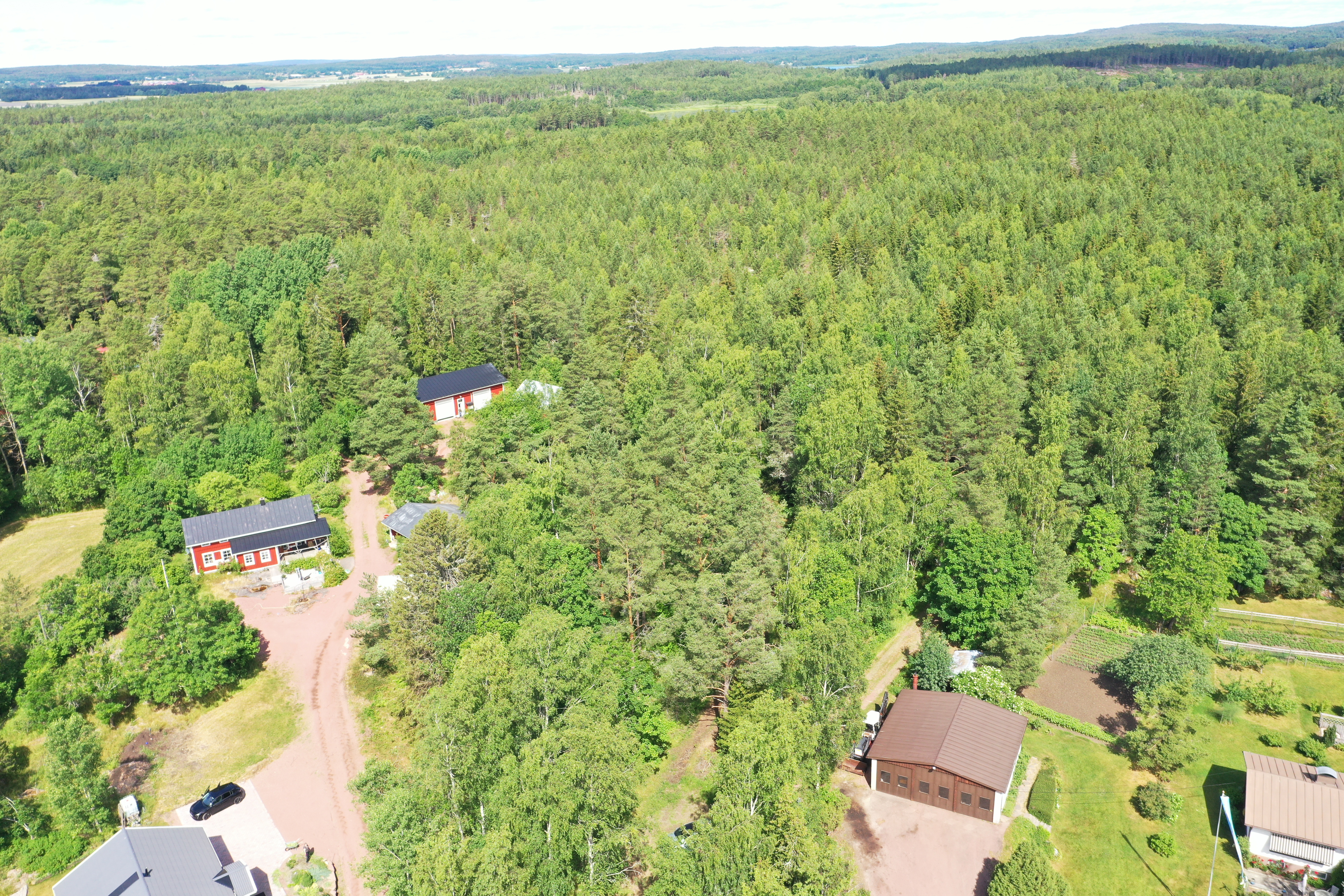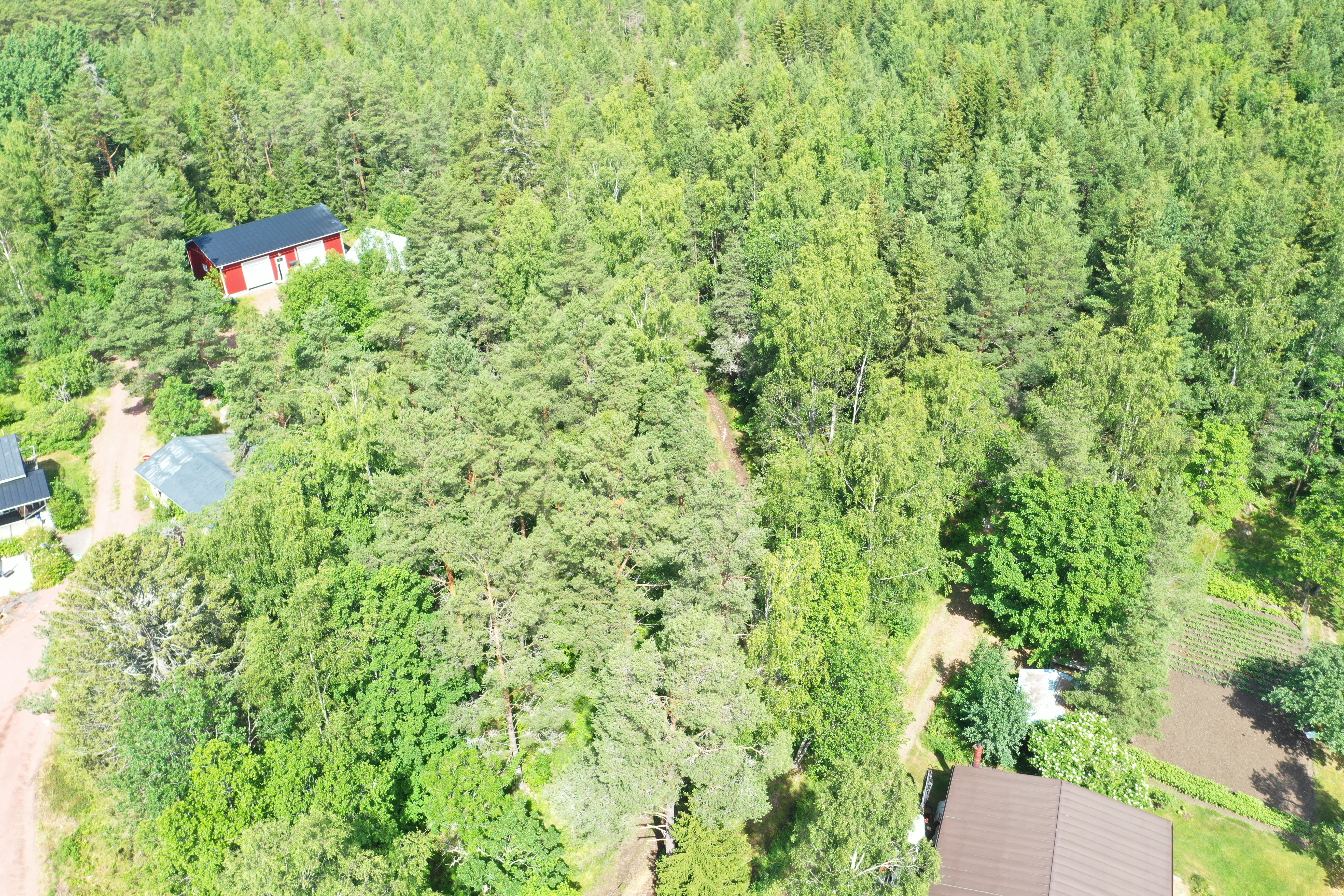 Outbruten bostadstomt om ca 3 000 m2 med bilväg fram till den södra tomtgränsen.