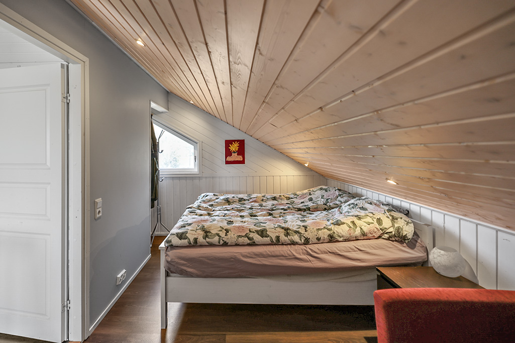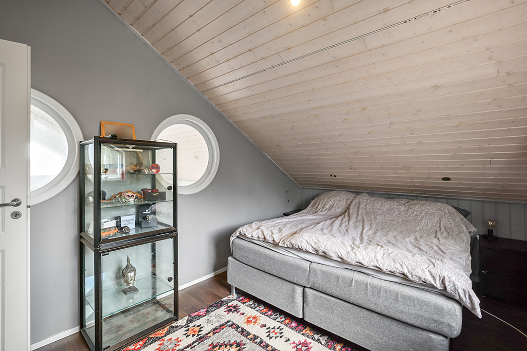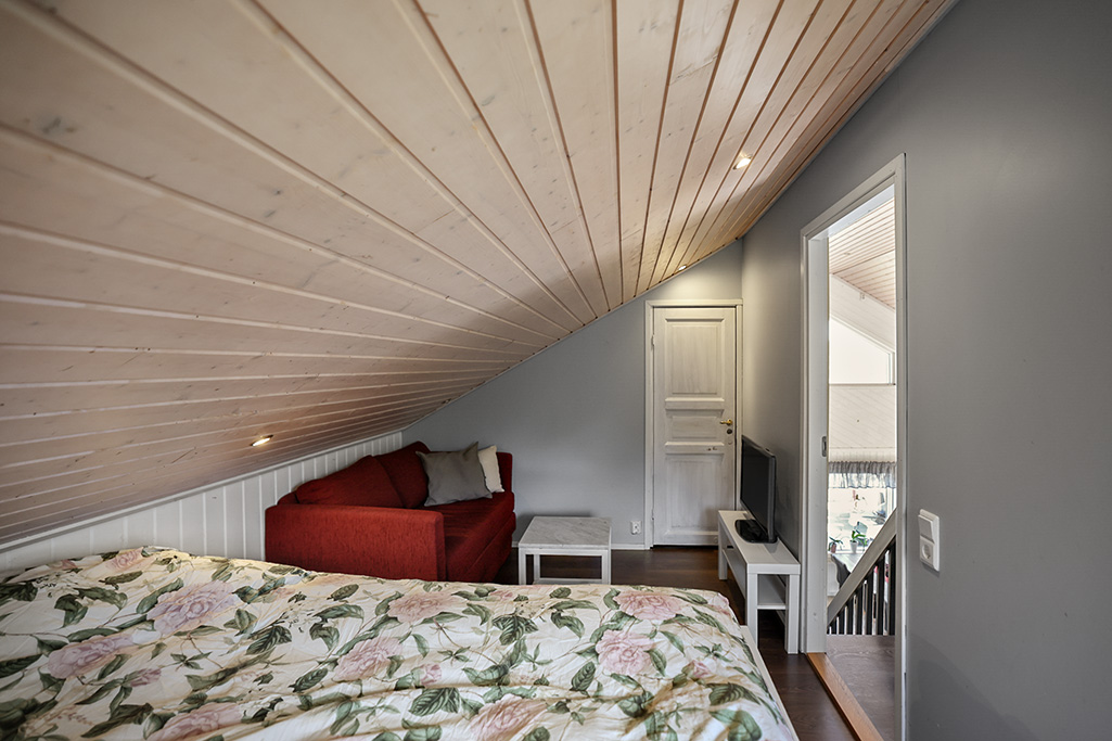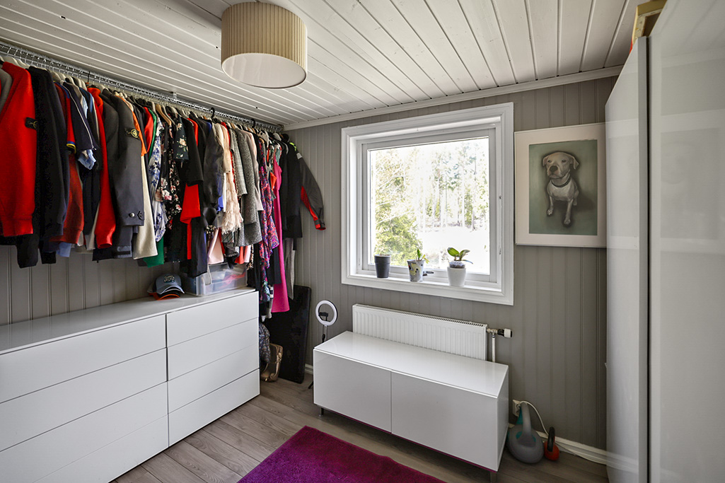 I det andra våningsplanet finns två stora sovrum som har vardera egna klädkammare.