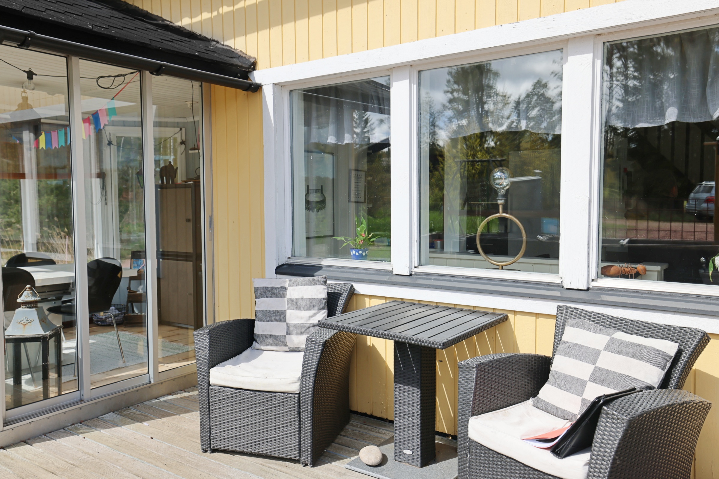 - Finns en inglasad altan med en-glas fönster samt en stor balkong/altan med sjöutsikt.