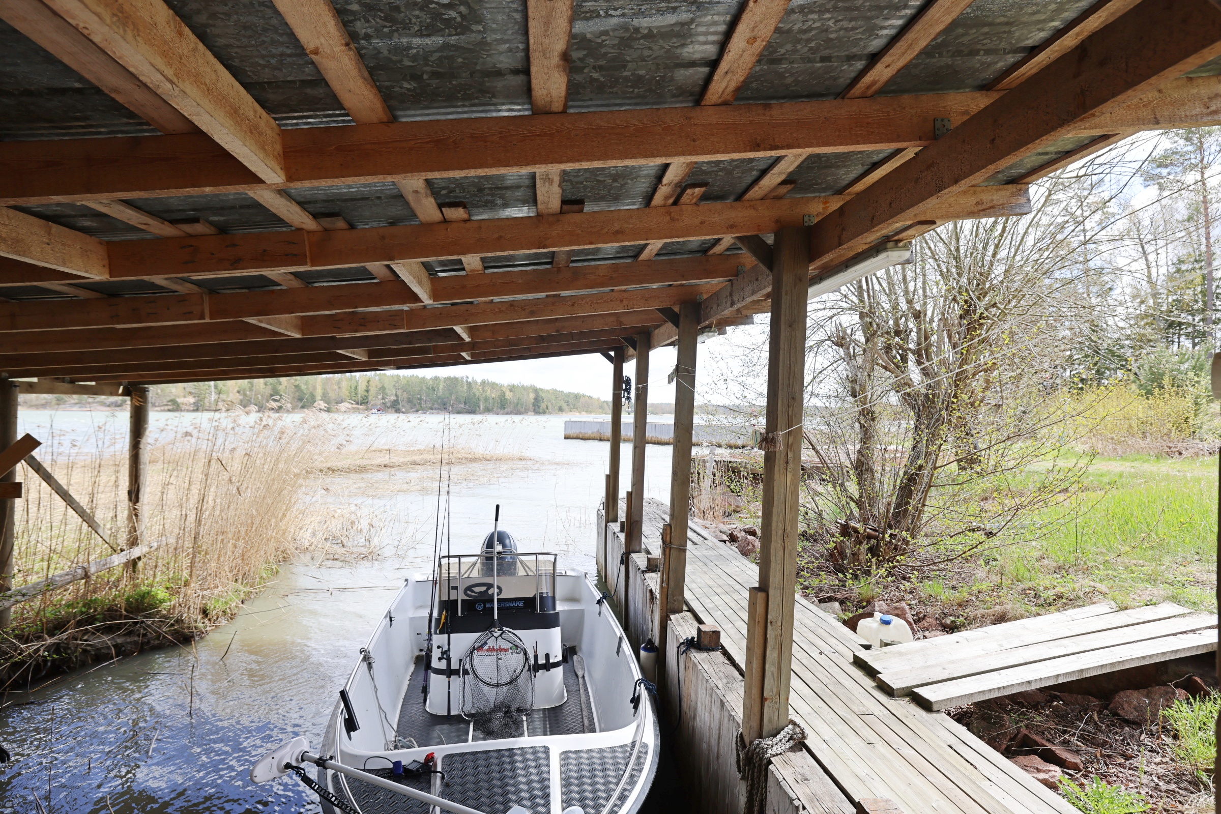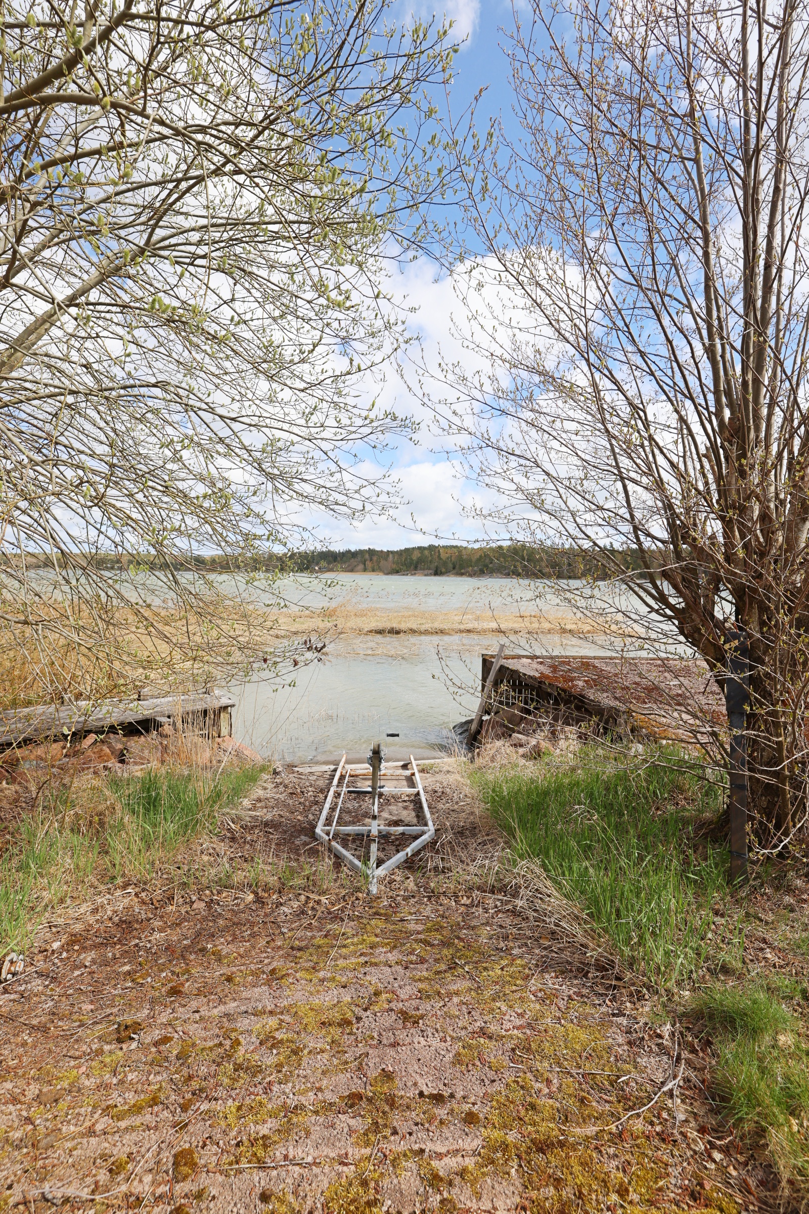 Tomten är 7200 kvm stor med ca 106 m bred strandlinje mot ett eget vattenområde om 2800 m2. Tomten sluttar vackert ner mot vattnet och nere vid stranden finns en rejäl hamnanläggning, sjösättningsramp, sandstrand och en brygga med ett enklare regnskyddstak.