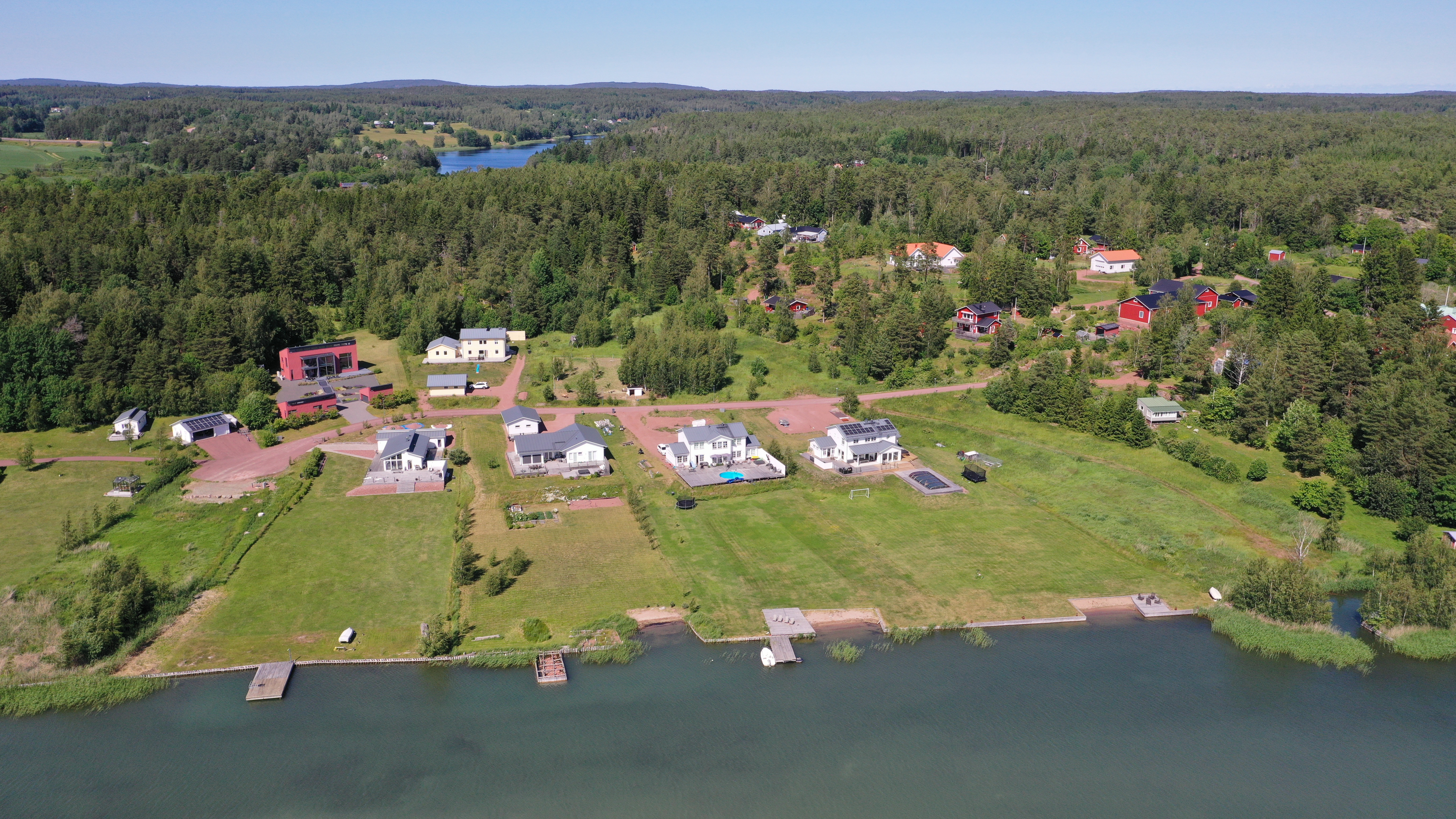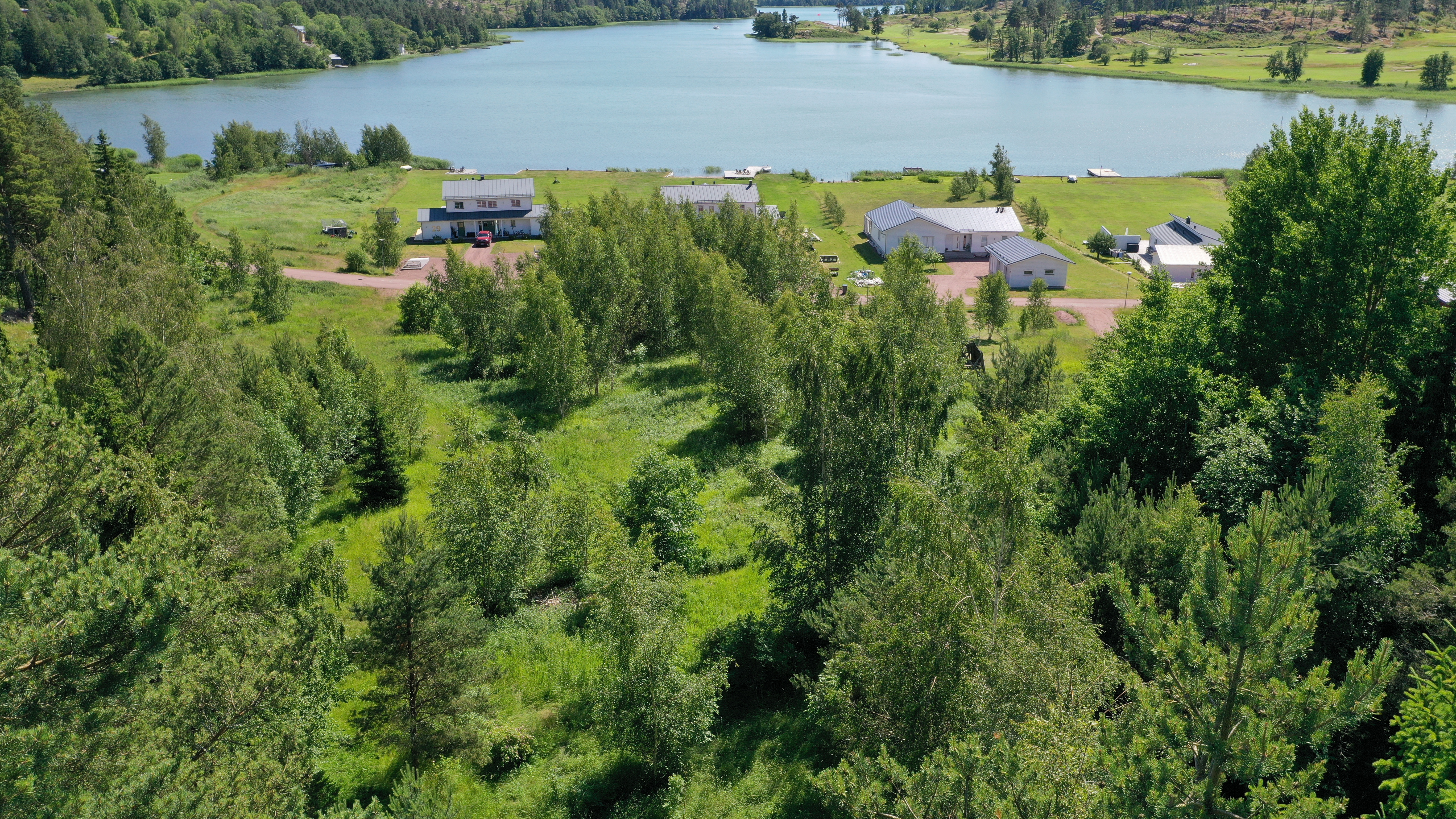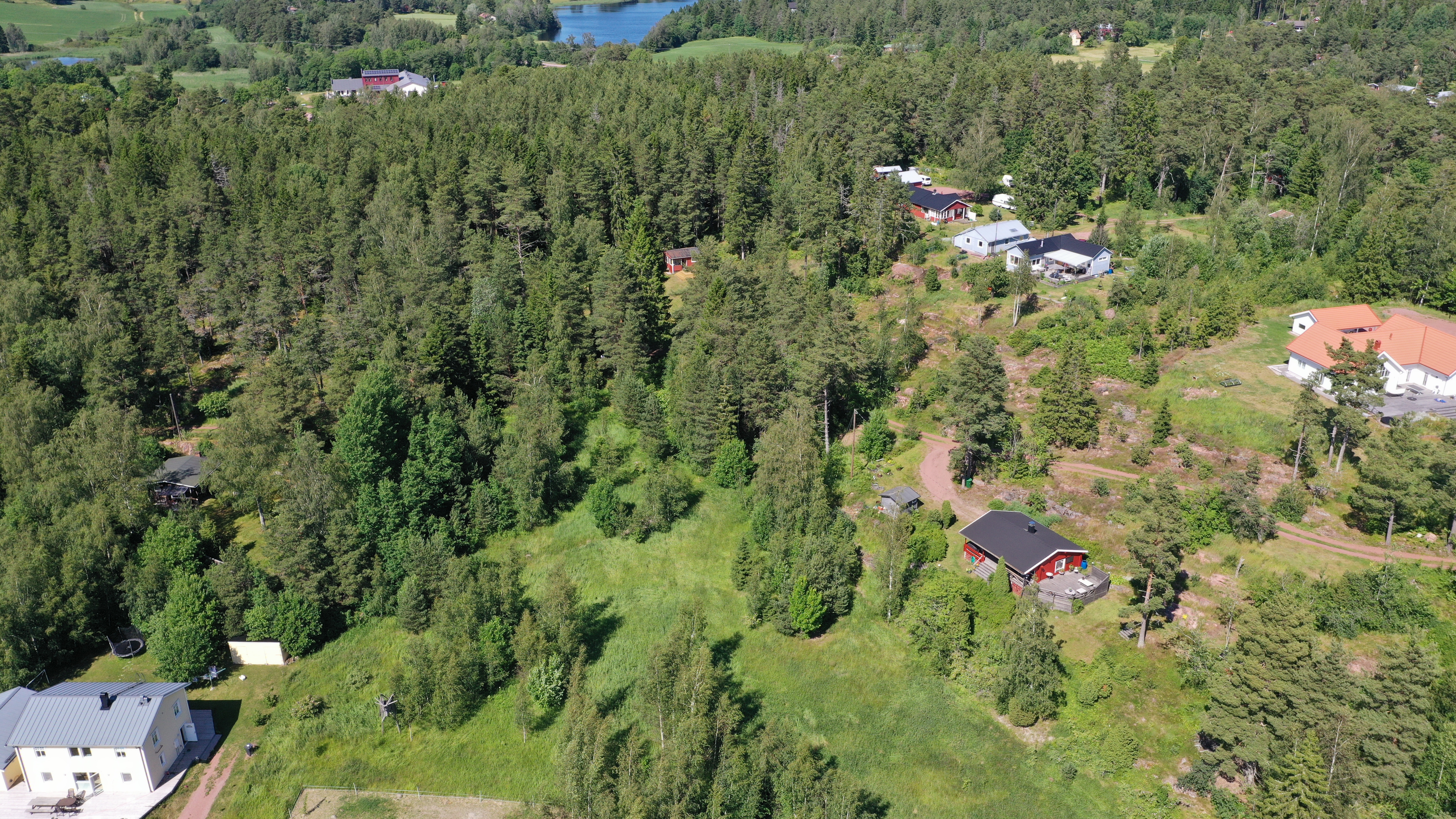 Tomten är belägen ca 6-8 meter ovanför vattenytan vilket ger tomten en trevlig utsikt ner mot vattnet.
