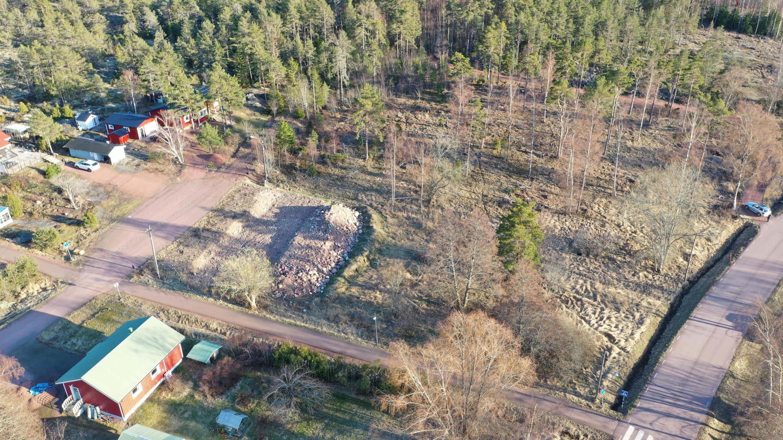 Tomten har ett fint söder- och västerläge och den är färdigt rålagd, avverkad och delvis påbörjad med markarbeten inför byggnation.