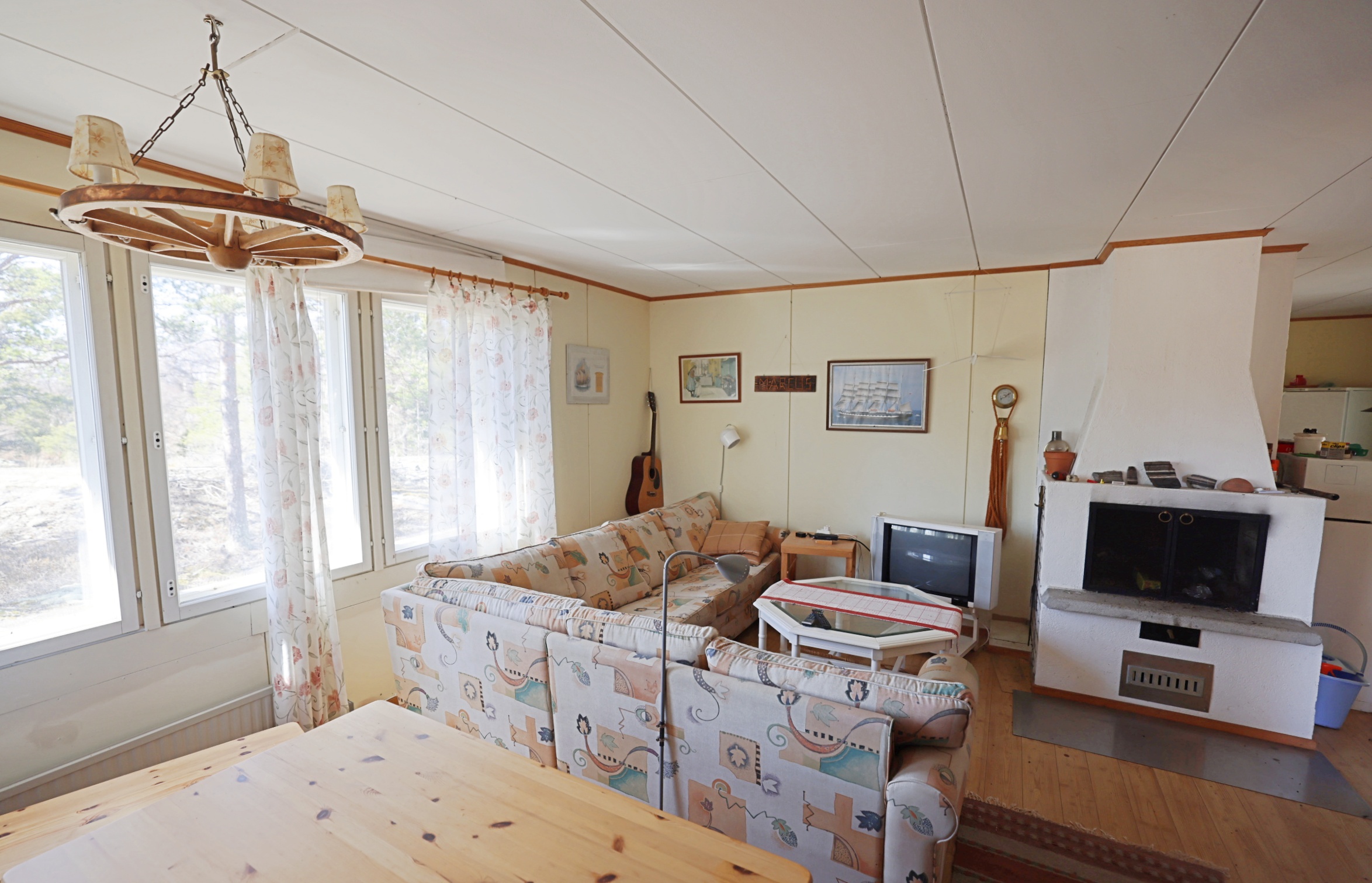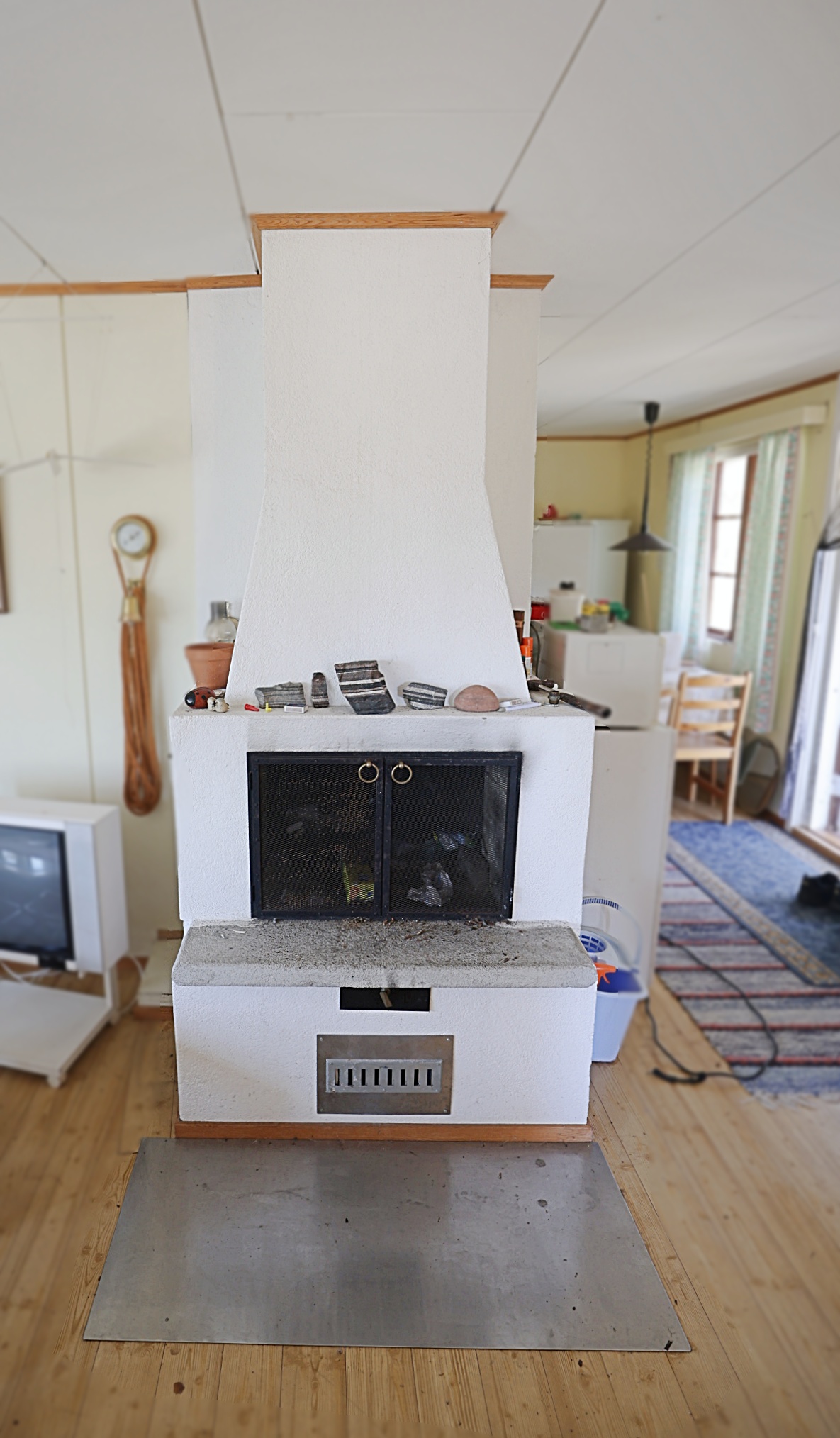 - Direkt elvärme samt eldning i öppna spisen.