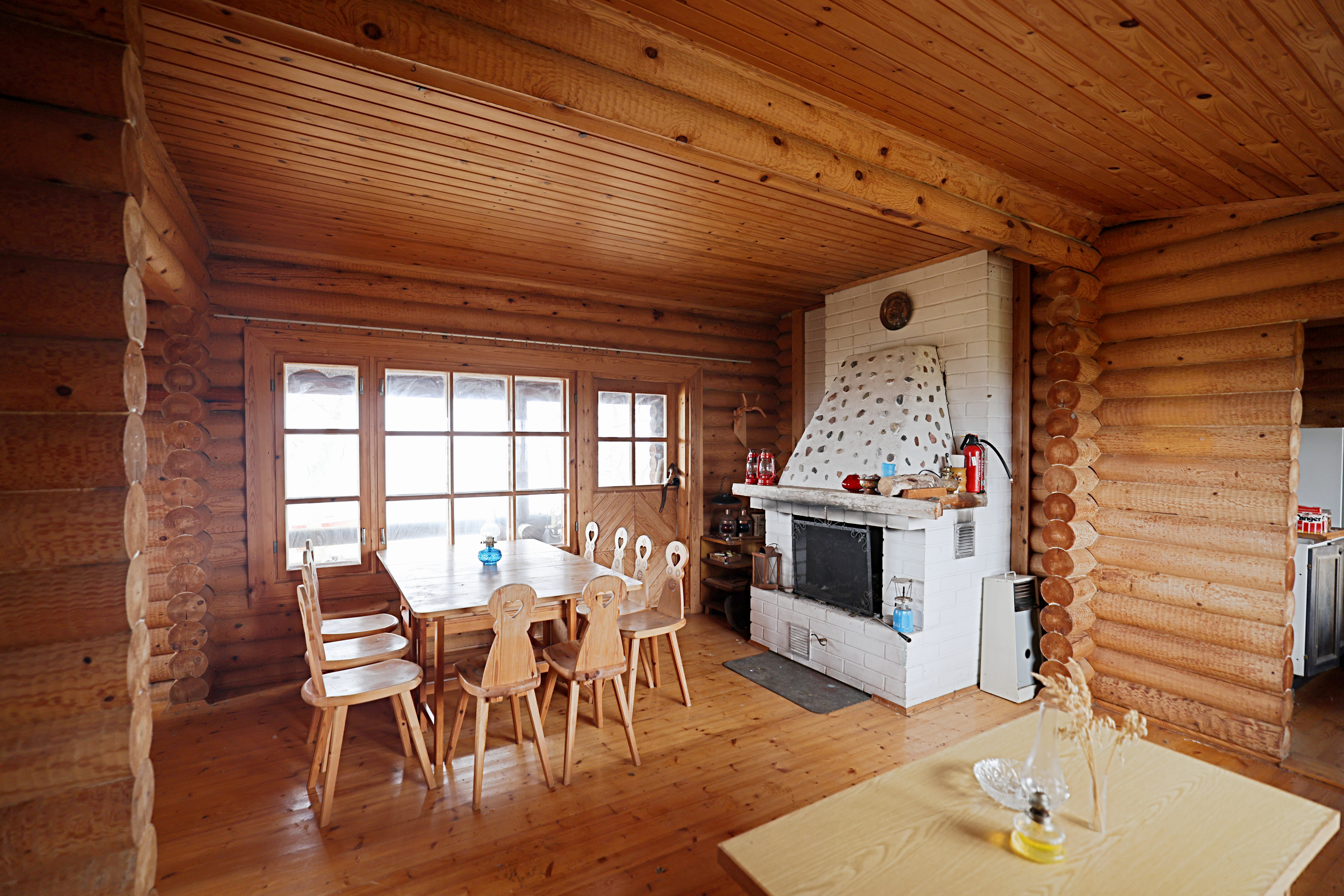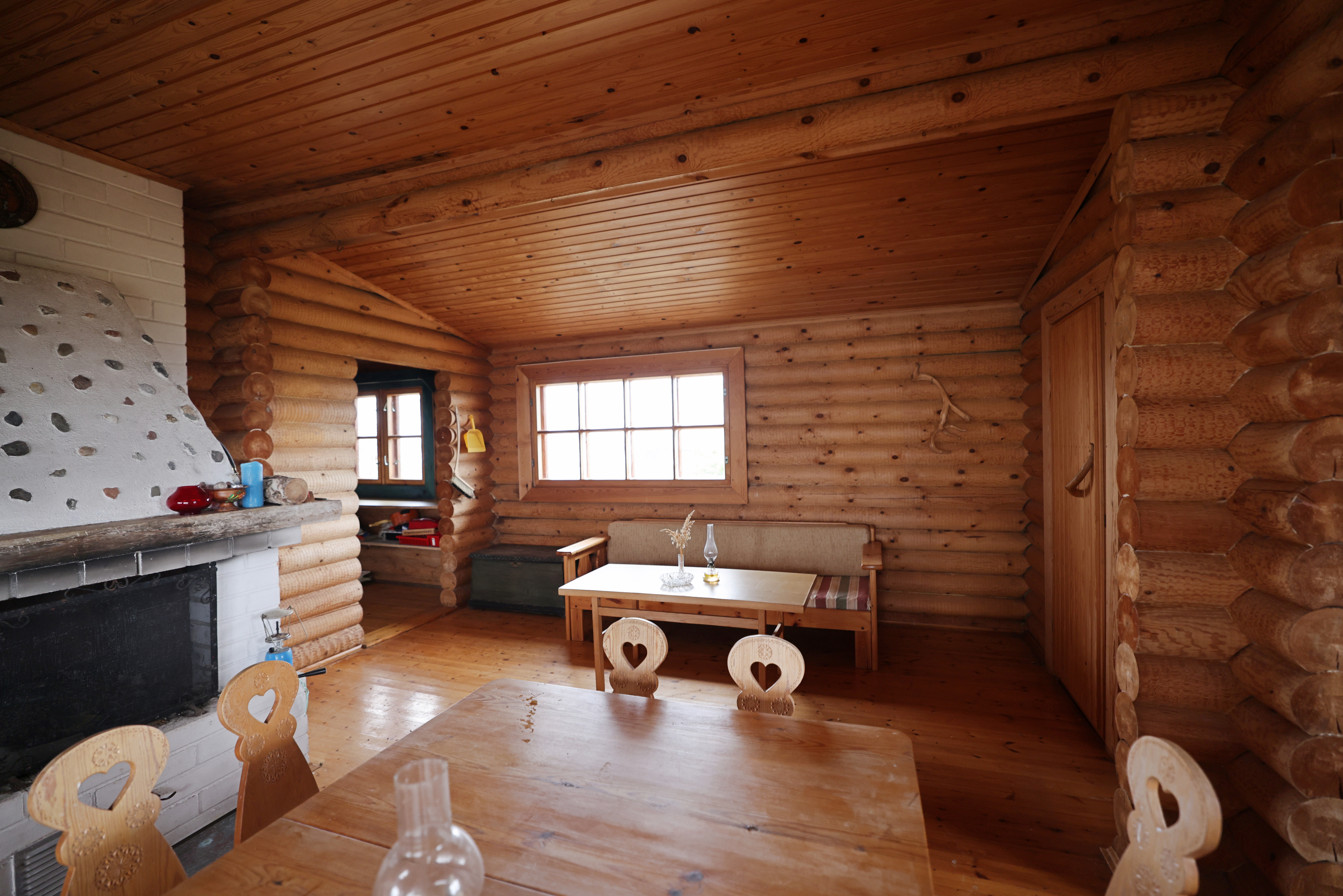 I vardagsrummet finns en vedeldad öppen spis och gott om utrymme för matplats. Från vardagsrummet finns en utgång till terrassen.