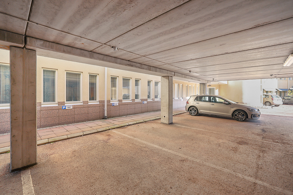Kommunernas socialtjänst hyr även samtliga angivna parkeringsplatser som ingår i försäljningen och 89,5 m² av de angivna förråd och sociala utrymmena och resterande 43 m² hyrs av Ålands Handikappförbund r.f.