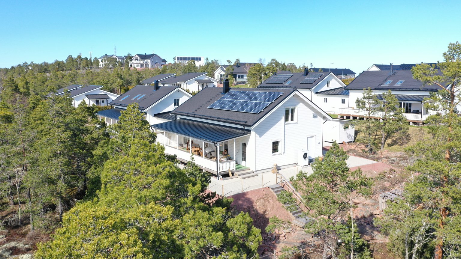 Modern parhuslägenhet om ca 160 kvm inrymmande fyra rum och kök med en egen solcellsanläggning ett attraktivt läge vid återvändsgränd på Fågelberget i Sviby, Jomala.