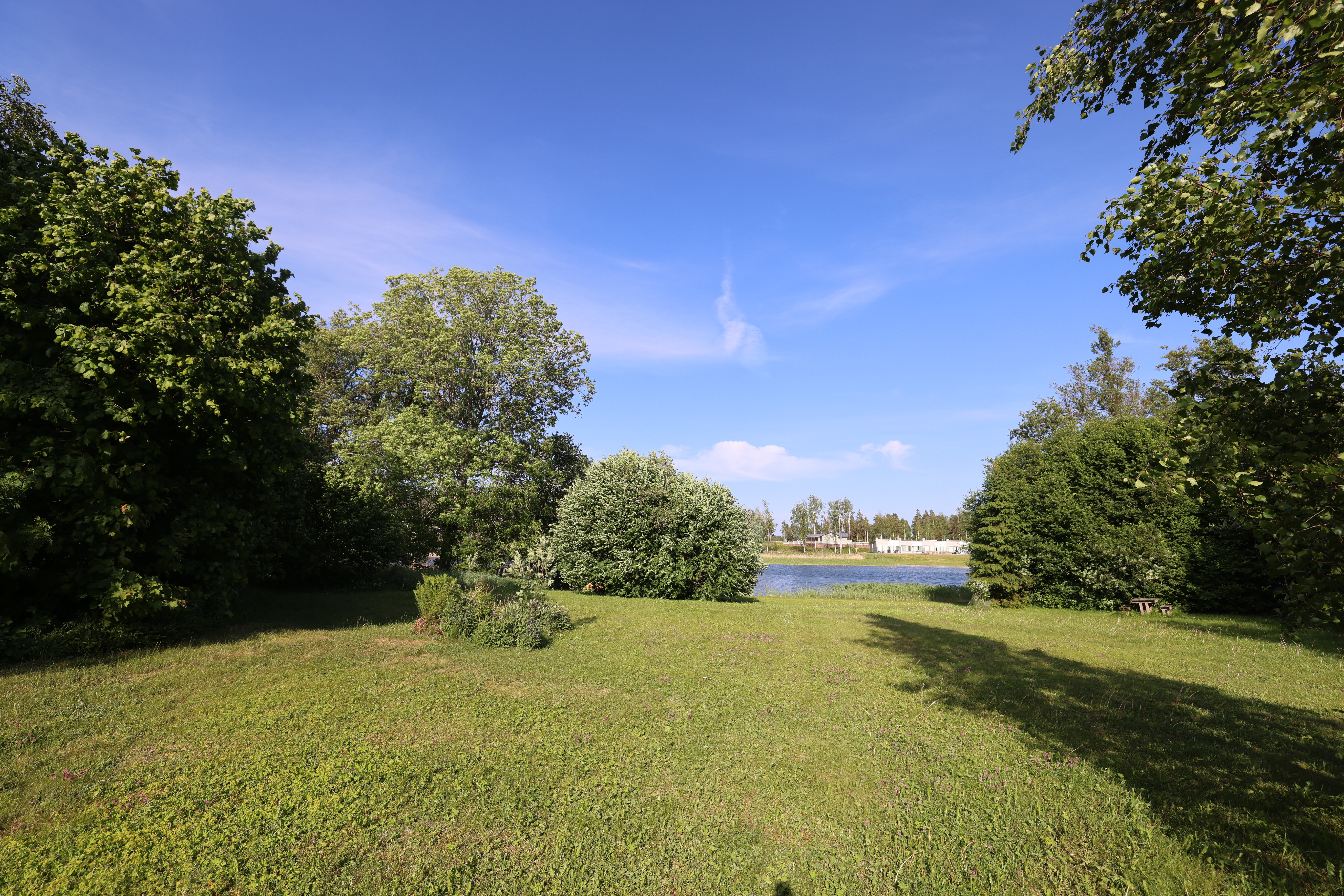 Tomten är flack, vistelsevänlig och har stora gräsmattsytor som sträcker sig hel vägen ner till stranden. På tomten finns ett fristående TC och nere vid stranden finns en uppdragen flytbrygga.