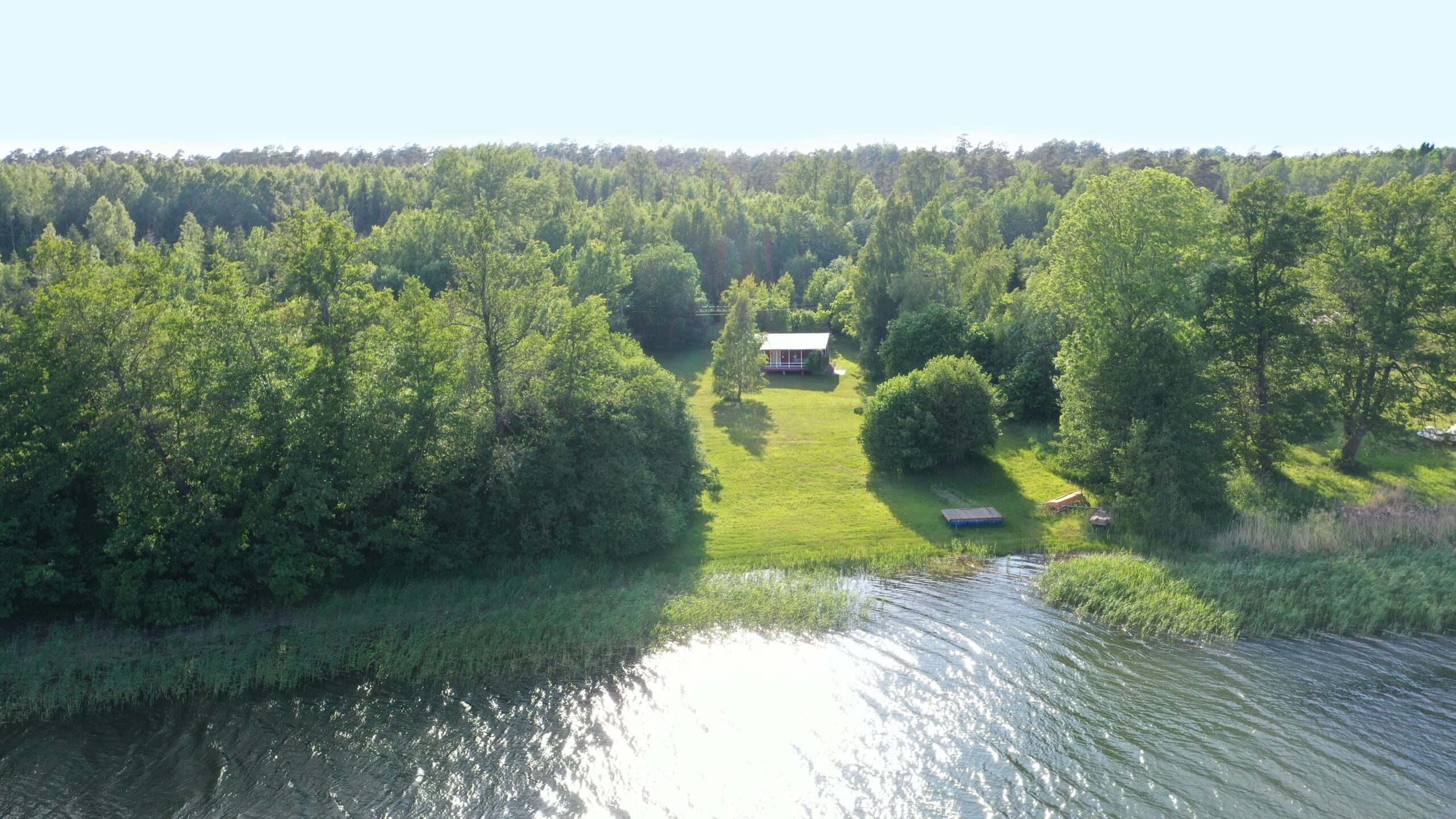 - Trevlig veranda under tak med österläge. På gräsmattan samt nere vid stranden finns flera fina platser var man kan anlägga fler uteplatser efter behov.