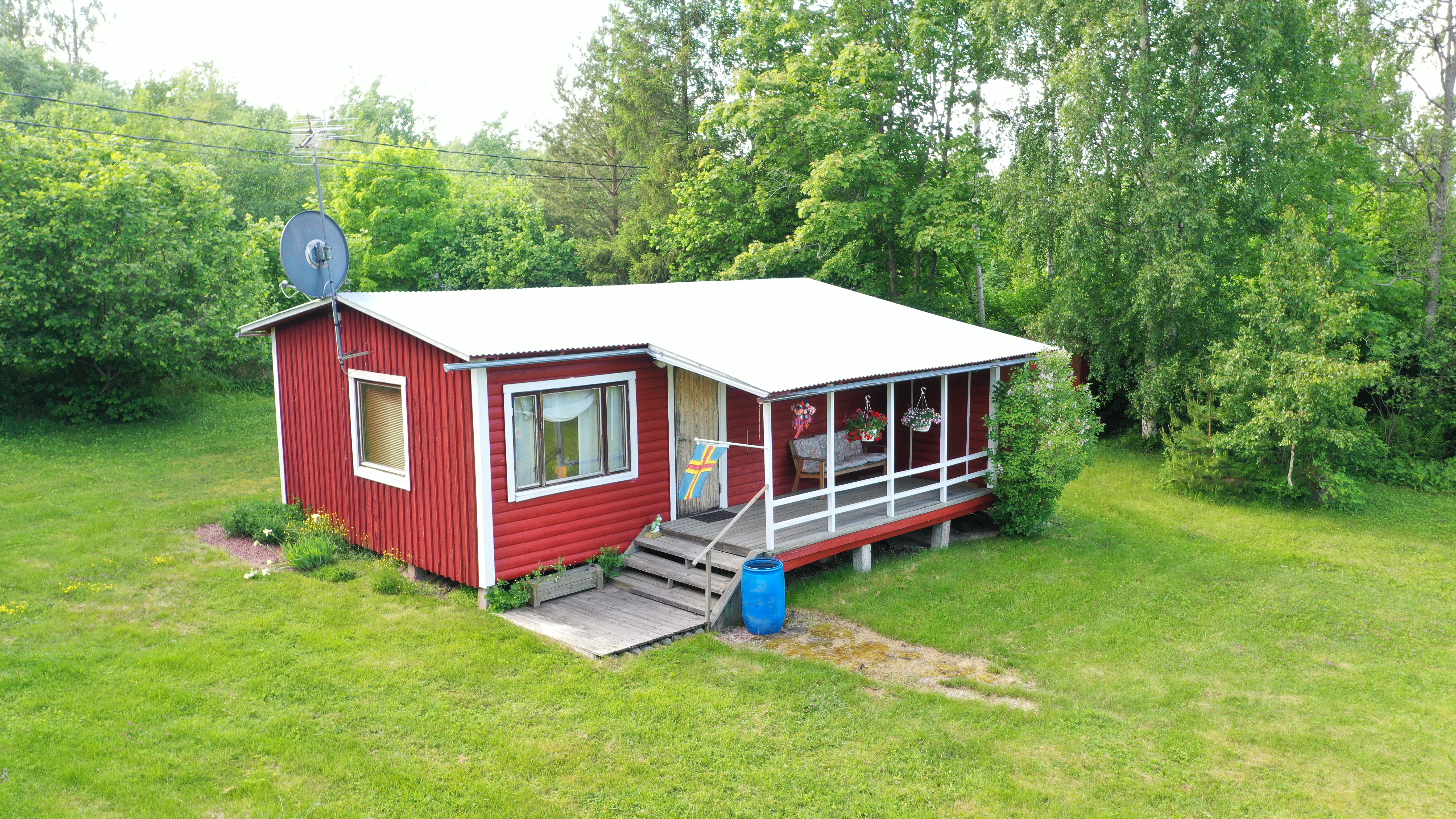 I Marby, Eckerö hittar ni denna fina sommaridyll med en stor och lummig trädgård som sträcker sig ned till vattenbrynet.