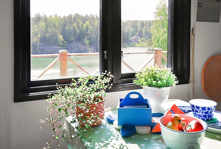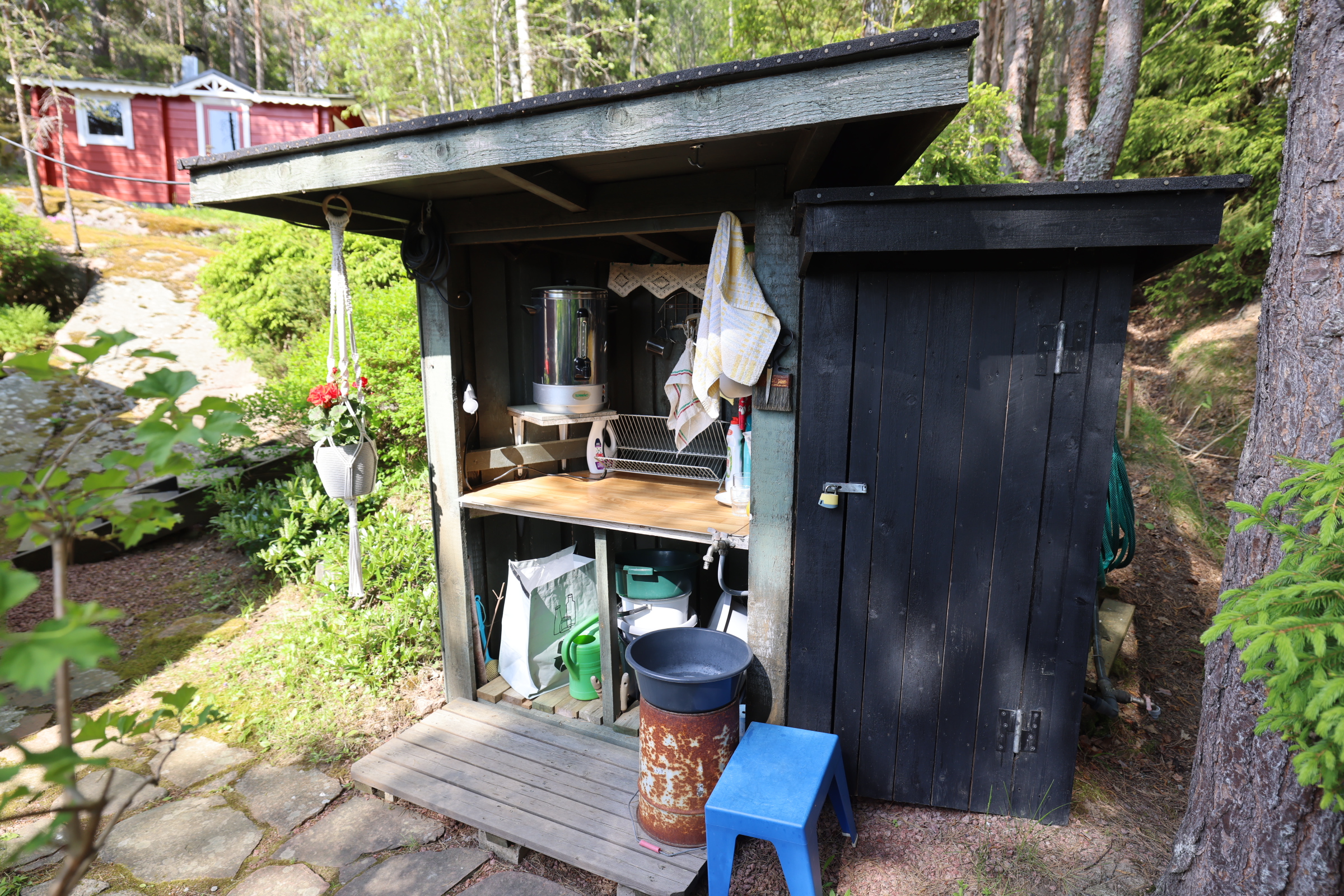 Invid stugan finns ett sommarkök med sommarvatten från egen borrbrunn.