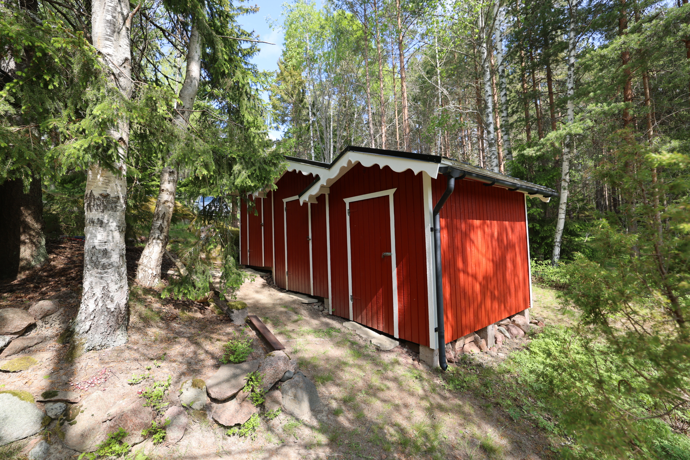 - Ja fristående byggnad inrymmande omklädningsrum/gästrum och bastu.