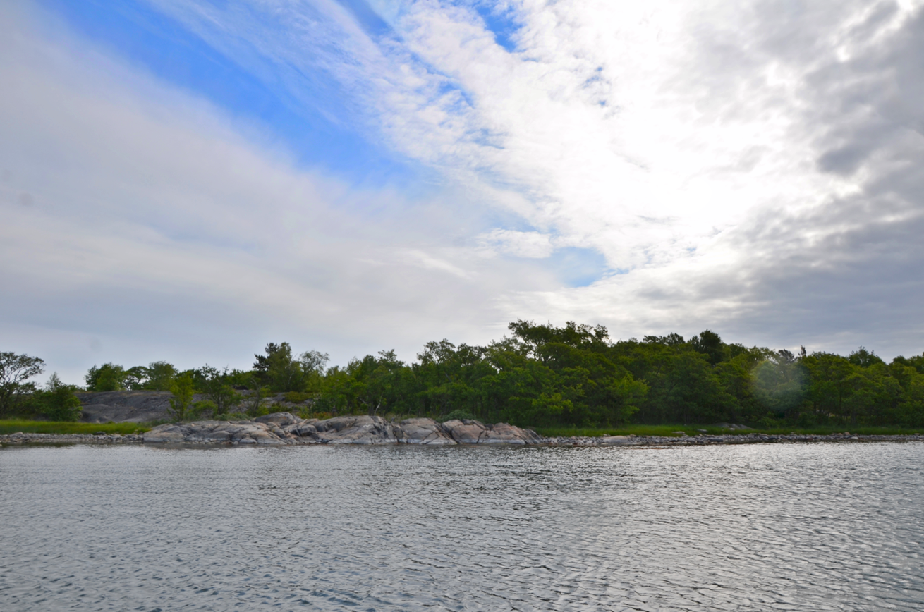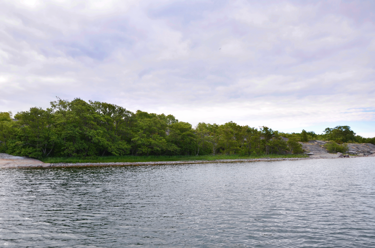 Ett stort strandområde på holmen Räddarskär på Fiskö, Brändö.